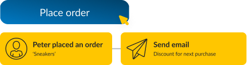 Easily connect your external system with Copernica using various trigger events, such as order created, product viewed, or product added to cart. Based on the trigger, you can initiate follow-up actions to store the data in Copernica or send a mailing directly.