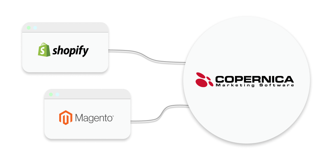 Connect your webshop directly with Copernica and immediately turn your customer data into results. With our free, ready-made integrations for platforms like Magento and Shopify, you automatically synchronize customer, order, and product data. You don't need an external party: you can arrange everything directly within our platform, often within a few minutes.