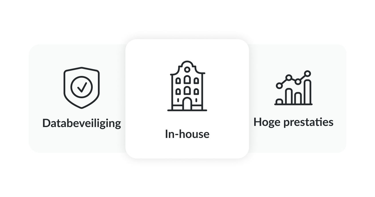 Onze technologie wordt volledig in-house ontwikkeld. Hierdoor hebben wij volledige controle over veiligheid, continuïteit en prestaties. Dat stelt ons in staat om de hoogste standaarden op het gebied van databeveiliging en betrouwbaarheid te garanderen.