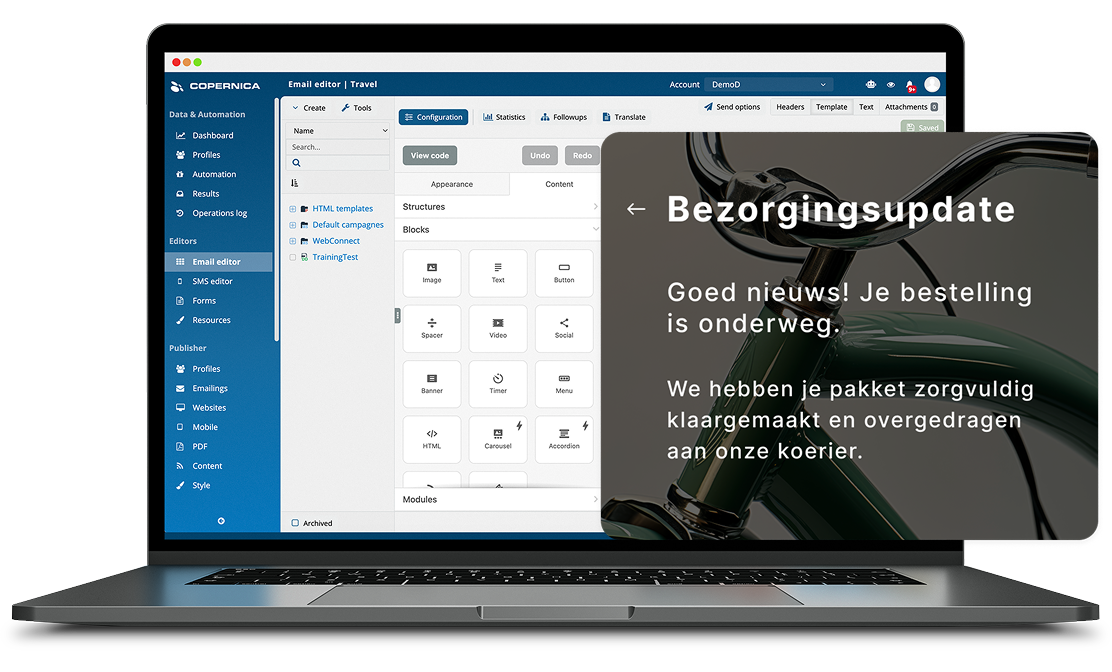 In tegenstelling tot marketingmails draait het hier niet om overtuigen, maar om duidelijkheid en betrouwbaarheid. De ontvanger verwacht deze e-mails direct, vaak binnen enkele seconden. Met de producten van Copernica zorg je ervoor dat dit soort cruciale berichten op tijd en correct worden afgeleverd.