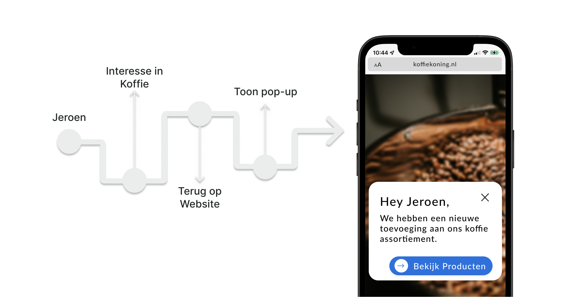 Formulieren kunnen direct op de website worden geplaatst of als pop-up verschijnen. Dankzij de website tracker bepaal je zelf het perfecte moment. Een formulier kan bijvoorbeeld worden getoond zodra een bezoeker voor het eerst je site bezoekt, na een bepaalde tijd op een pagina of in samenhang met interacties in andere kanalen. Op die manier speel je in op gedrag in real time en vergroot je de kans op conversie.